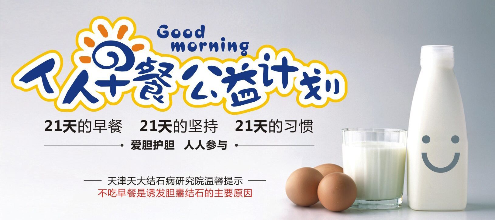 “人人早餐公益计划”是由天津天大结石研究院、天津百信医院联合发起的,旨在通过派发免费爱心早餐的公益方式,帮助大家养成吃早餐的好习惯,向全社会传播保护胆囊的理念。
