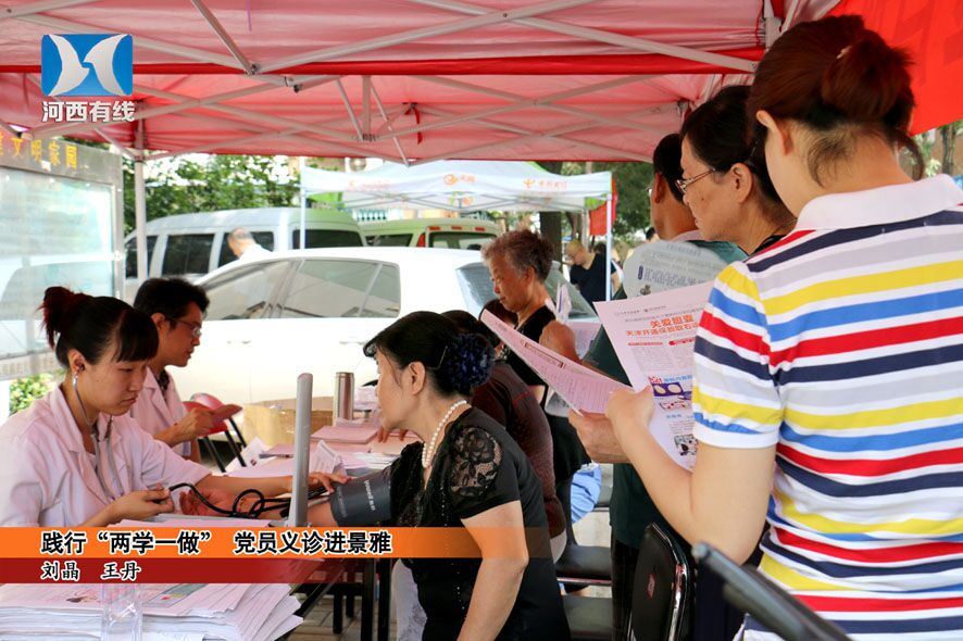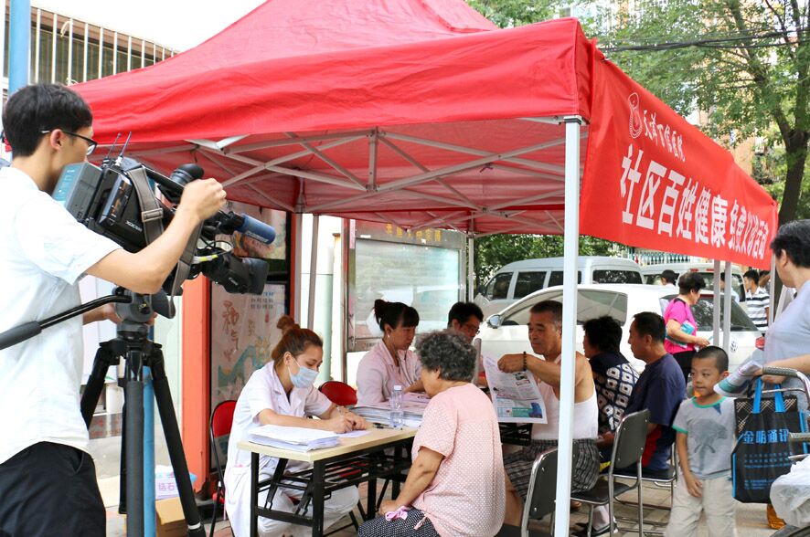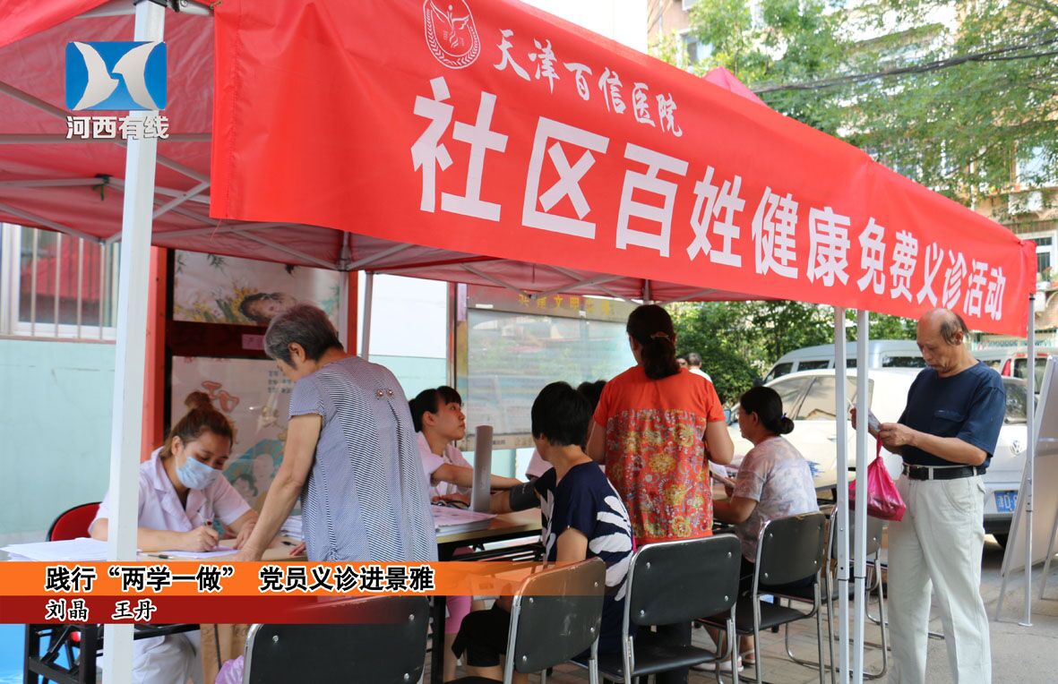 昨天上午8点,百信医院的党员代表及医护人员便到达河西区景雅里小区做好了准备工作,为社区居民进行免费义诊,天津河西有线电视台的记者进行了采访和报道。