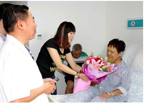 医生预计老人8月4日可以出院,巧合的是,这一天正是杨奶奶的第六个本命年——72岁的生日。于是院方决定在那一天为老人庆祝一下,给她一个生日惊喜。可是,由于手术非常成功,并且术后的调理很好,所以杨奶奶身体恢复比预计的要快很多,各种检查结果显示,杨奶奶的体征已经有效具备出院的条件,8月1日就可以正式出院了。 今天,住院部的医护人员来到杨奶奶的病床前,把精心准备的鲜花和真诚的祝福献给了她。现场的浓厚氛围和温馨场面,让老太太和她的家人十分感动,老太太热泪盈眶的说:“谢谢你们,你们给了我的生日礼物!”